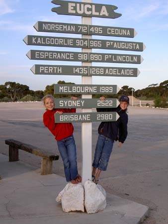 Als we op maandag wakker worden is de wind gelukkig een stuk afgenomen. Als de wind was gebleven zoals die op zondag was, hadden we niet kunnen rijden. Omdat de rit niet zover is en we niet verwachten in Woomera veel bijzonders aan te treffen, staan we gewoon om 8 uur op. Om half 10 vertrekken we, en we rijden in Zuidelijke richting langs nog weer een aantal menselijke ‘molshopen’. Een paar dagen eerder hadden we van iemand gehoord dat het zonde was om naar Coober Pedy te gaan. Er was ab-so-luut niets te zien. Wij zijn het niet met die meneer eens. Een heel bijzondere ervaring, zo’n soort wildwest stadje. Hier zie je echt nog een beetje hoe het gaat met goudkoorts, al is het in dit geval opaalkoorts. Stoere en vooral vieze mannen en heel veel schreeuwerige reclameborden. En de omgeving is zeer bijzonder, zoals René al heeft beschreven in week 12. Vlak bij Coober Pedy loopt de ‘Dog Fence’ dit is een hek dat meer dan 5600 (!!!) kilometer lang is. Deze is bedoeld om de dingo’s (wilde honden) bij het vee weg te houden. Ruim 5600 kilometer, haast niet voor te stellen, wie bedenkt nou zoiets. Laat staan dat je het uitvoert. Daar waar het hek de weg kruist, is een grid aangebracht, een wildrooster zouden wij zeggen. Deze grids zijn er overigens niet alleen ten behoeve van de ‘Dog Fence’, ook voor de gewone hekken van de boeren liggen deze in de weg. Dit betekent dus dat je meerdere keren per dag zo’n grid passeert. Niet echt geweldig voor de banden, lijkt ons. Maar we denken niet dat de Australiërs daar veel boodschap aan hebben. De reis gaat weer voorspoedig. Wij zijn elke keer nog weer blij met de stabelizers die we voor de caravan gekocht hebben. Je voelt nauwelijks meer dat die erachter hangt. Er staat nog een stevige wind, maar hij is niet té. De dames hebben ondertussen een nieuwe ringbandmap gekregen. Dat moest wel, want ze zijn hele families aan het tekenen. Iedereen komt met een ‘foto’ in de map. Het begon met één meisje, haar zusjes en broertjes en haar vader en moeder. Ondertussen is daar een hele familie en buurt bijgekomen. Inclusief een dode opa (die anders dik in de tachtig zou zijn geweest), een omgebouwde tante, een huwelijk van iemand met een donkere man (leuke chocoladekleurige kindjes natuurlijk), een gezin met zeven kinderen, een gezin dat naar Australië op vakantie gaat. En wat je maar niet meer kunt bedenken. Bij alle foto’s worden ook de eigenschappen en hobby’s van de personen vermeld. Of ze aardig zijn, van shoppen houden, sportief zijn, van een biertje houden (hoe komen ze daar nou bij ;-). Ondertussen schat ik dat ze tegen de 75 mensjes hebben verzonnen. Erg leuk en ze zijn er erg druk mee. Een boek om te bewaren. De omgeving is in eerste instantie weer zeer leeg en vlak. Het is eigenlijk niet uit te leggen. Maar jullie moeten je voorstellen dat we vandaag 375 kilometer rijden (meer dan Nederland door dus) zonder dat we één plaatsje tegenkomen. Er is niets maar dan ook hélemaal niets. Leegte zover je kunt kijken. Zelfs geen koeien of schapen. Ik kan het opschrijven, maar je moet er doorheen rijden om het te ervaren. Het is niet zo dat we door een zandwoestijn rijden, er groeit wel ‘iets’ op de grond. Maar dat is allemaal zeer laag en ziet er zeer onsappig uit. Tegen het eind van de reis komen er langzamerhand weer een paar heuvels. En in plaats van het niets, kleine struikjes. We rijden ook door een stuk land waar we hoe dan ook de weg niet afmogen. Het is militair terrein. Ook hier even ter vergelijking, ik denk dat Nederland en België in dit militaire gebied passen. Woomera, waar we zullen stoppen, is een oude raketbasis. Zowel de Australiërs als de Europeanen en de Amerikanen, hebben vanaf Woomera allerlei rakketen ontwikkeld en gelanceerd. Ik denk dat ze geen betere lege plek op de aarde konden vinden. De woestijn hier zal ongetwijfeld nog met een flink aantal brokstukken versierd zijn. Om het nog even over de leegte van Australië te hebben. Uit een boek van Bill Bryson (waarover zo meer) heb ik het volgende verhaal. In 1994 werd er in Australië een soort aardschok waargenomen. Het centrum van de schok lag in een woestijngebied. Er zijn meldingen van gemaakt, maar niemand wist precies wat het was. Het kon eigenlijk geen aardschok zijn, maar ja, wat dan wel? Dat wist men ook niet. Ze hebben de zaak laten rusten. In 1997 heeft een Japanse extremistische groep gifgas in de metro gebruikt, zoals vast nog wel bekend, waarbij meer dan 20 dodelijke slachtoffers zijn gevallen. Daarna is uiteraard een onderzoek gedaan naar alle bezittingen van die groep en de betrokken mensen. En jawel, ze bleken ook een stuk grond in Australië te bezitten, midden in de woestijn. Exact het gebied waar de ‘aardschok’ was geweest. Dit vergemakkelijkte het onderzoek en het blijkt dat daar een illegale atoomproef heeft plaatsgevonden. Dit geeft dus duidelijk de uitgestrektheid van het land weer. Er vindt een atoomproef plaats in je achtertuin, maar je hebt er geen idee van. Mochten jullie meer van dit soort ‘leuke’ wetenswaardigheden willen lezen. Koop dan het boek van Bill Bryson: Tegenvoeters. Het is werkelijk een fantastisch grappig boek (al waarvoor dank aan Cynthia en Karin) en ook nog eens zeer leerzaam. Veel curieuze feiten, niet de dingen die je in de gewone reisboeken tegenkomt. Echt een aanrader voor de donkere en koude winteravonden die eraan komen 😉 In de loop van onze reis viel het ons op dat er her en der een wat groenere kleur over de aarde leek te liggen. En in een iets lager gelegen gebied zagen we wat water. Bij een roadhouse vlak voor Woomera lagen er zelfs plassen. Geregend dus. Aha, de wolken en de harde wind in Coober Pedy waren dus de rand van het lage drukgebied hier. Navraag leerde dat het er al 3 dagen had geregend. De eigenaar van het roadhouse lachte erbij. ‘Gelukkig wel’, en er mocht nog wel veel meer vallen. Het was er al een tijd erg droog geweest. Grappig is dat, om te zien dat mensen nog echt blij kunn
